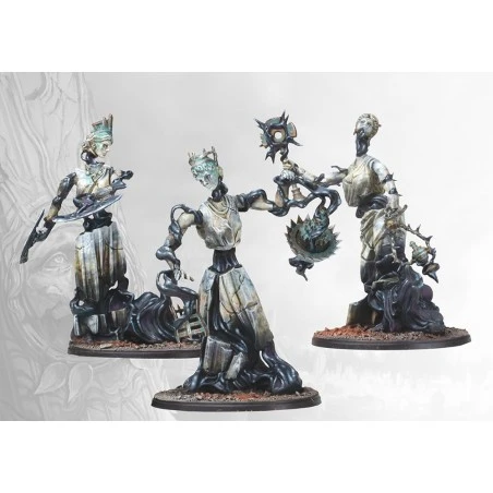 3 figurines en plastique, 3 socles de cavalerie, 3 bases de cavalerie, 1 carte de commandement et des instructions de montage. Kit double avec Karyatids