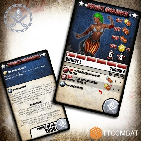 Bondissant des cordes, la Pirate Boarder, une agile elfe pirate, se regroupe avec son équipe pour former une Équipe d’Abordage, augmentant ainsi tous les dégâts des attaques depuis les cordes.