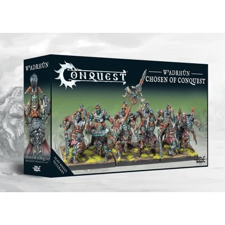La présence de l’Ukunfazane, la Déesse Vivante, parmi les W’adrhun, garantit que la population dans son ensemble est dévouée ; les Cultes, composés de ces W’adrhun qui consacrent leur vie au culte et à l’émulation de leur dieu patron, poussent cela encore plus loin. Les Élus de la Conquête sont les plus prolifiques de ces Cultes, leurs guerriers Élus étant présents dans presque toutes les tribus. La vitesse et la discipline, associées aux dons de la déesse, permettent aux Élus de la Conquête d’être toujours là où ils doivent être sur le champ de bataille, freinant l’avancée de l’ennemi et renversant la situation avec des assauts exécutés de manière impeccable. Cette unité peut également constituer une force de vétérans, mais l’inverse n’est pas vrai.